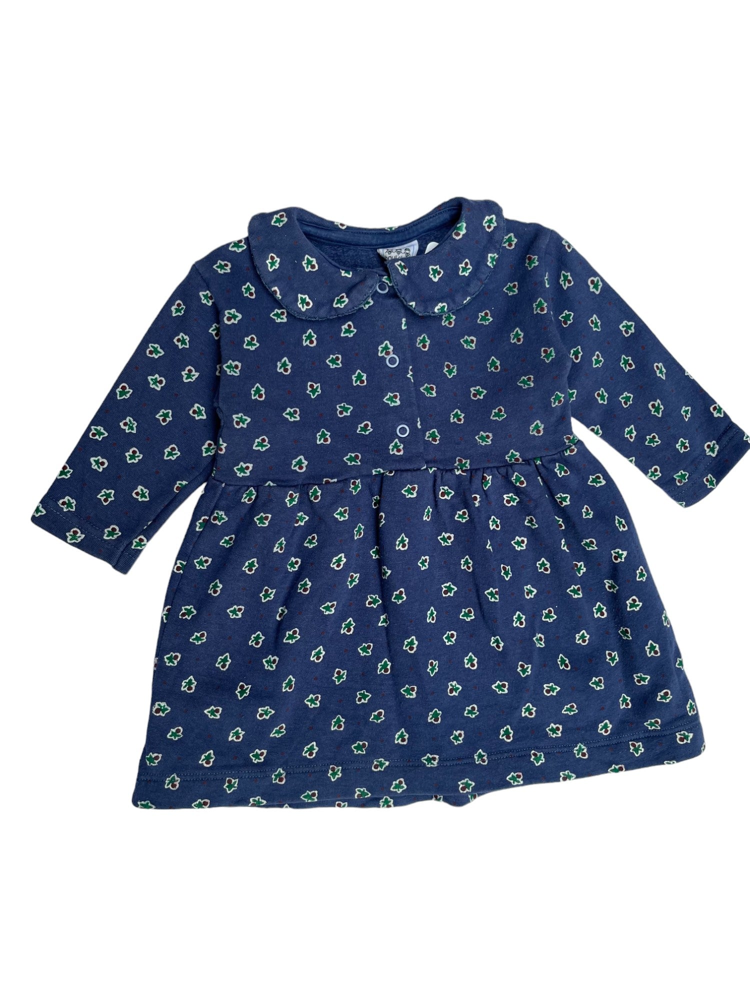 Adorable robe bleue à fleur, manches longues, matière sweat. Parfaite pour la mi-saison. Taille 12 mois