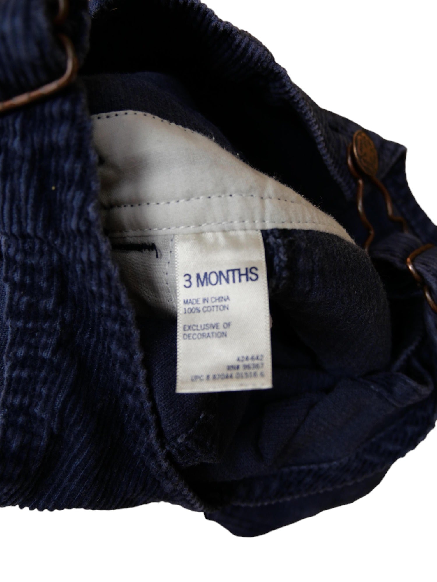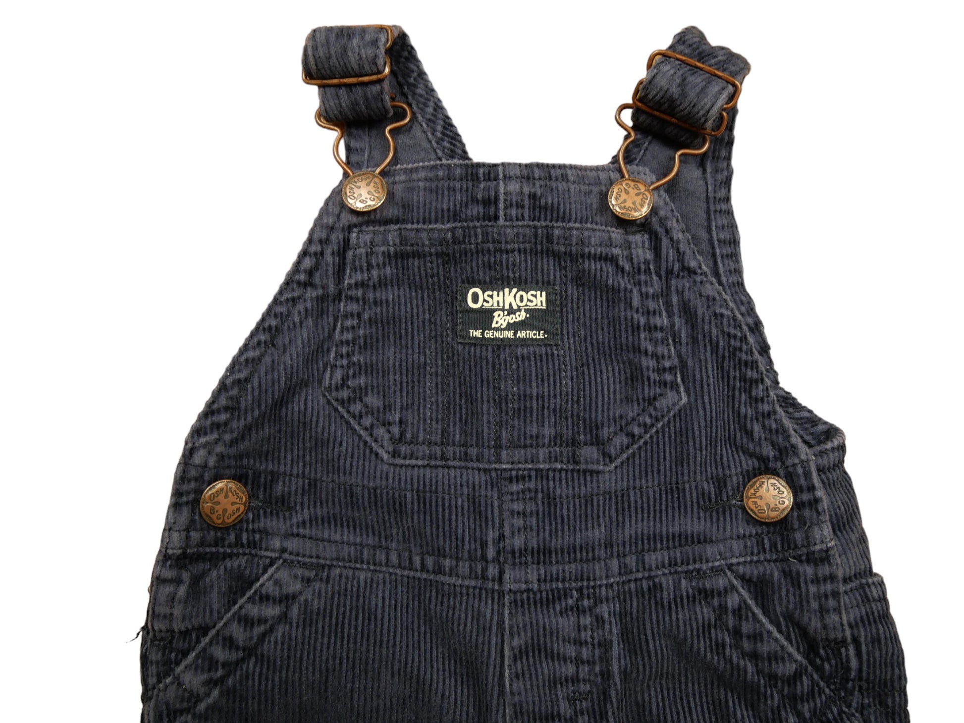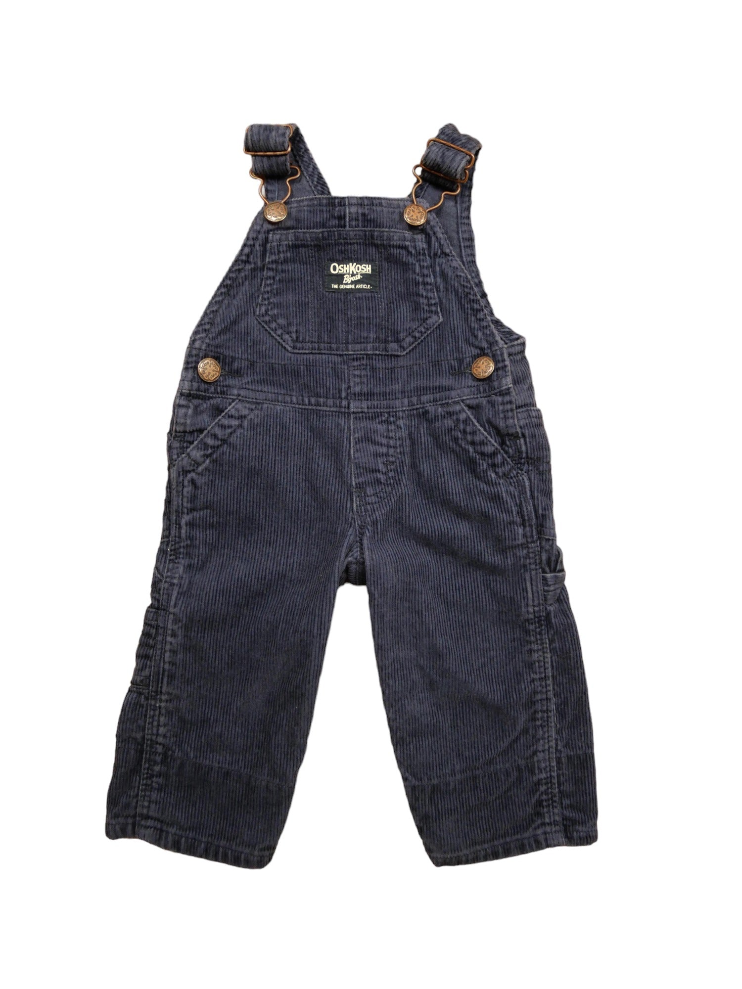 Salopette Oshkosh, en velours côtelé bleu marine, bien chaude. Boutons pressions à l'entrejambe. Parfait état
